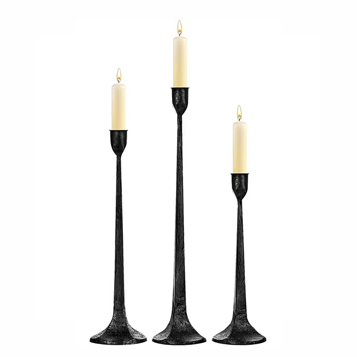 Black Hammered Metal Candlesticks, Set of 3