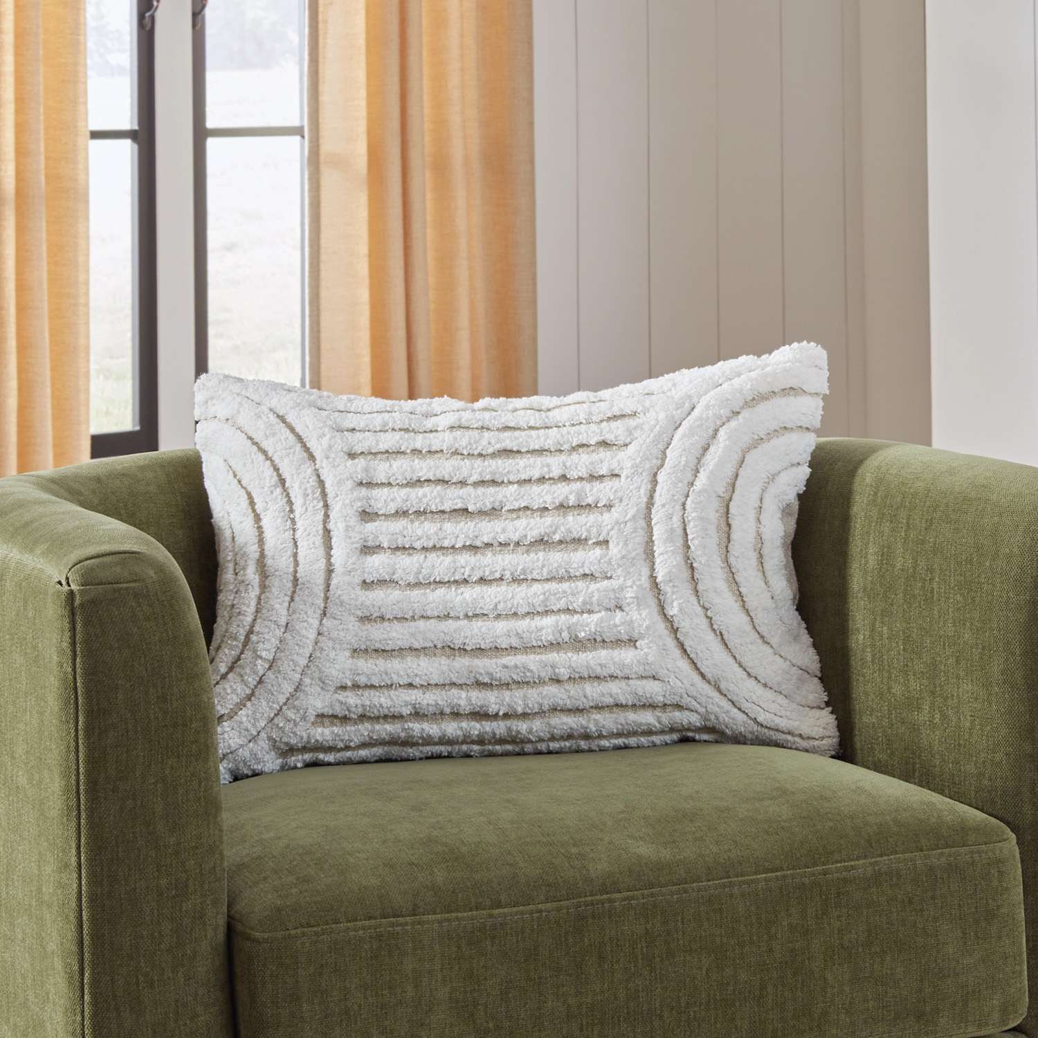 Make relaxing on your bed or couch a little cozier. With its snuggly-soft texture and tufted geometric design in white and tan, this throw pillow is the perfect choice to make a casually cool statement with your decor.