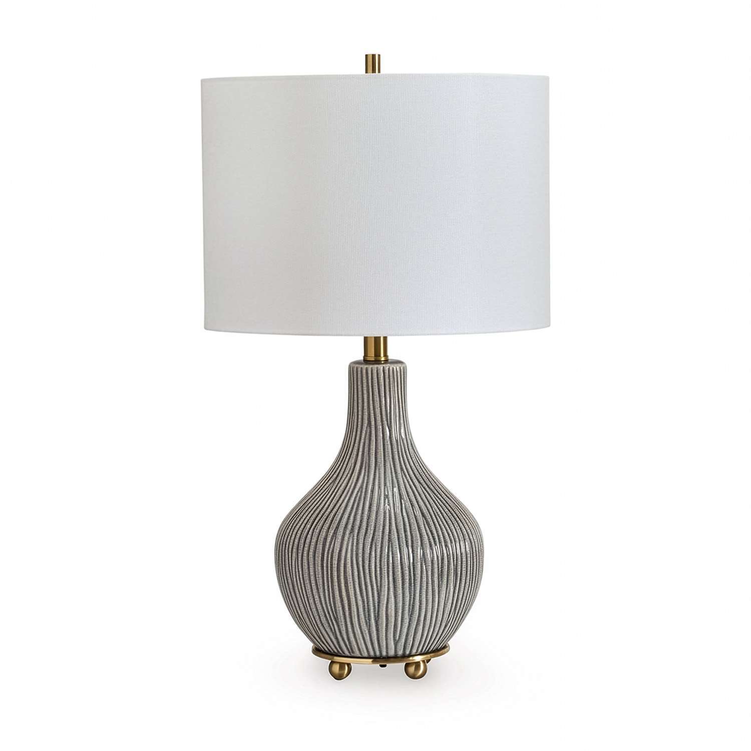 This table lamp’s shapely profile strikes such a pleasing pose. Its gourd base is simply gorgeous, while a gray crackle effect adds a rich layer of interest to the ceramic surface. Goldtone metal feet round out the oh-so-contemporary aesthetic. So much brilliance in one lamp.