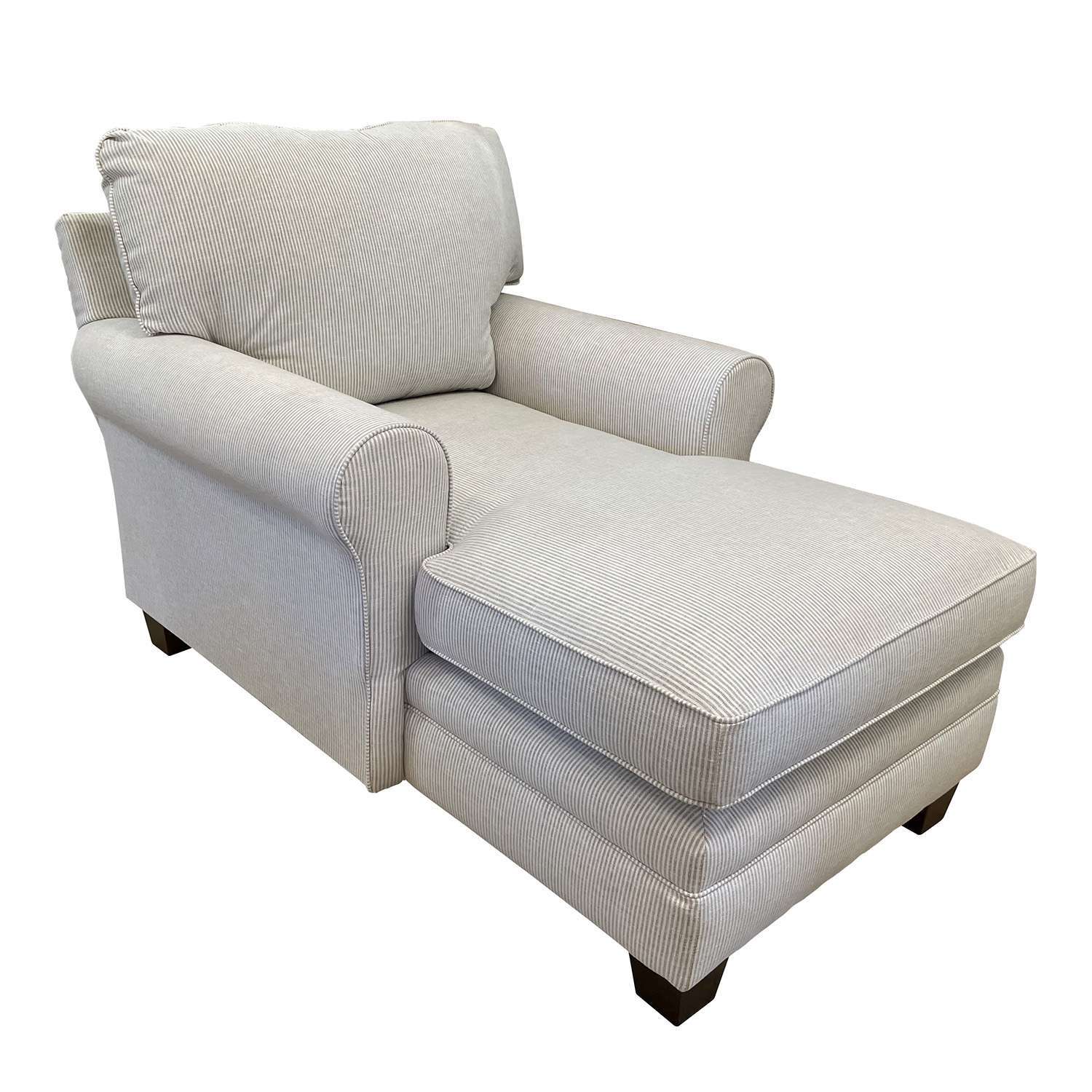 The sturdy hardwood frame built in America ensures durability, while the modern, traditional design adds sophistication to any room. Choose from over 700 fabrics and three wood finishes to make it your own. Elevate your relaxation experience with our upholstered chaise lounge.